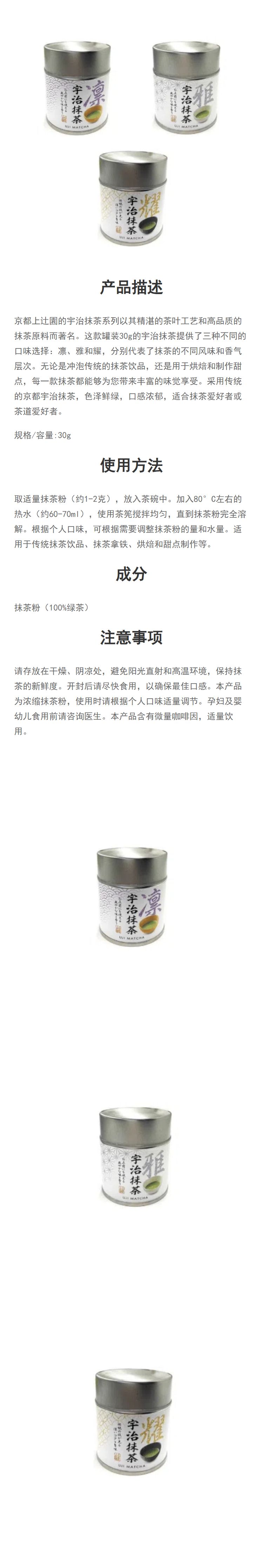 【日版】京都上辻園 宇治抹茶 凛/雅/耀 罐装 30g(有效期10个月)