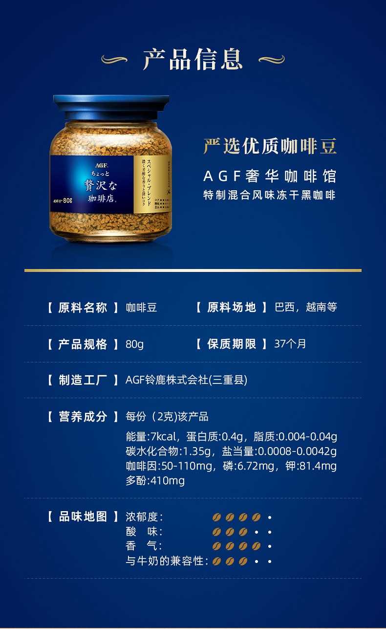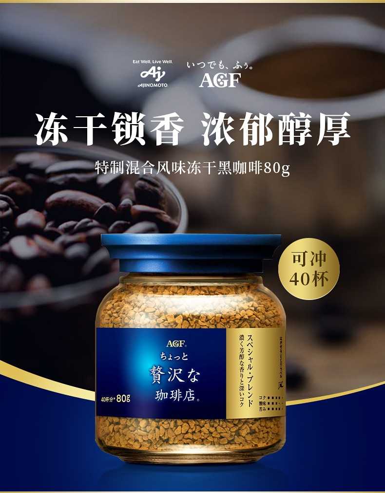 【日版】AGF 轻奢咖啡厅特制/现代混合瓶装无糖速溶咖啡80g