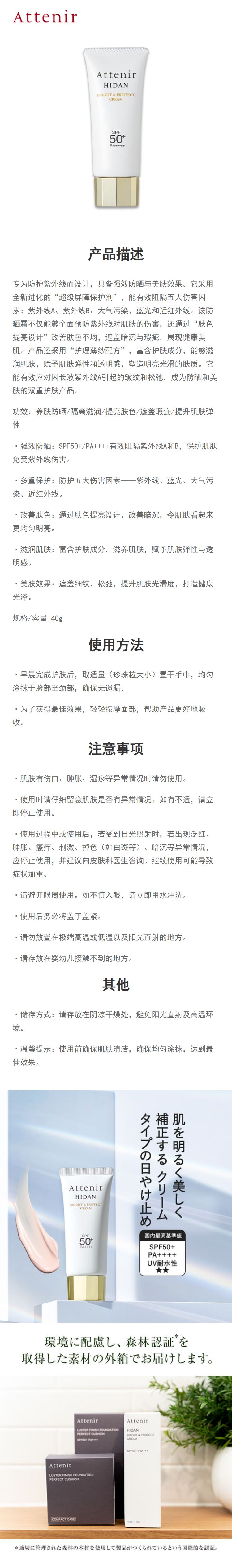 【日版】ATTENIR艾天然 全效防晒隔离霜40gSPF50/PA++++ 新版