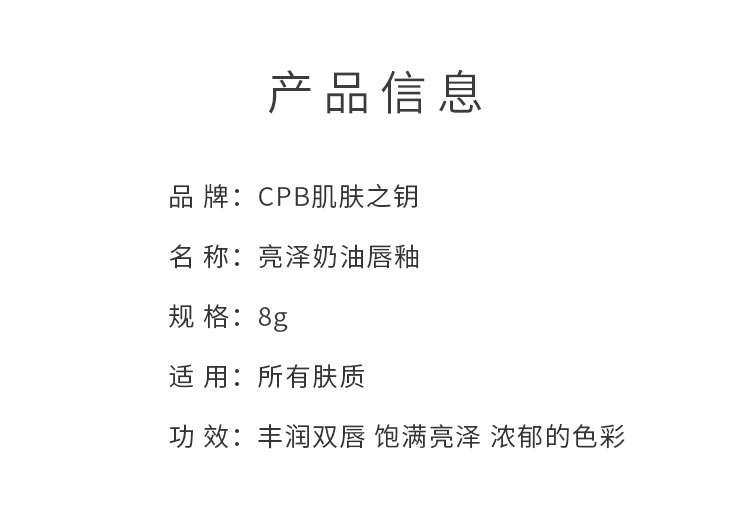【日版】CPB肌肤之钥 亮泽奶油唇釉8g 多色可选