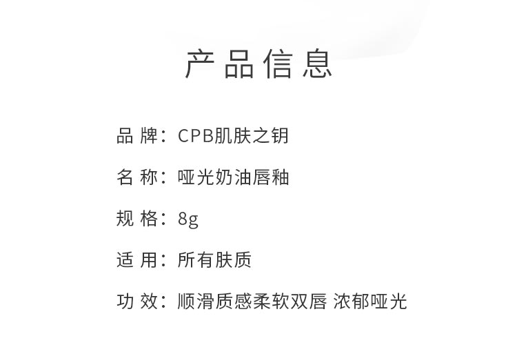 【日版】CPB肌肤之钥 哑光奶油唇釉8g 多色可选