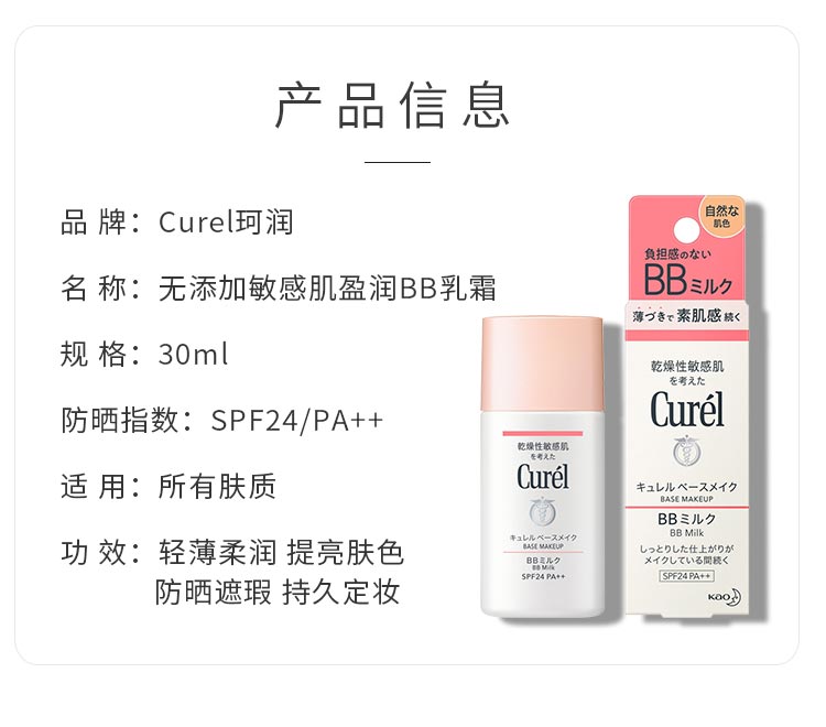 【日版】Curel珂润 无添加敏感肌盈润BB乳霜30mlSPF24/PA++