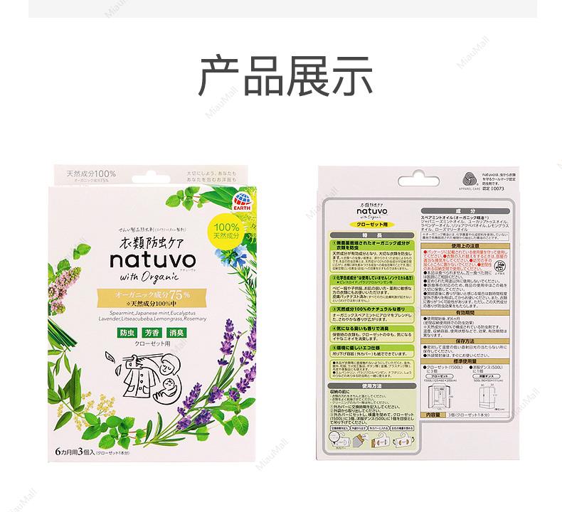 【日版】EARTH地球制药 Natuvo衣物芳香防虫剂3个入