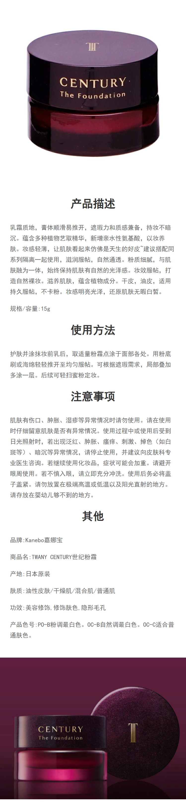 【日版】Kanebo嘉娜宝 TWANY CENTURY世纪粉霜15g 体验装【OC-B】