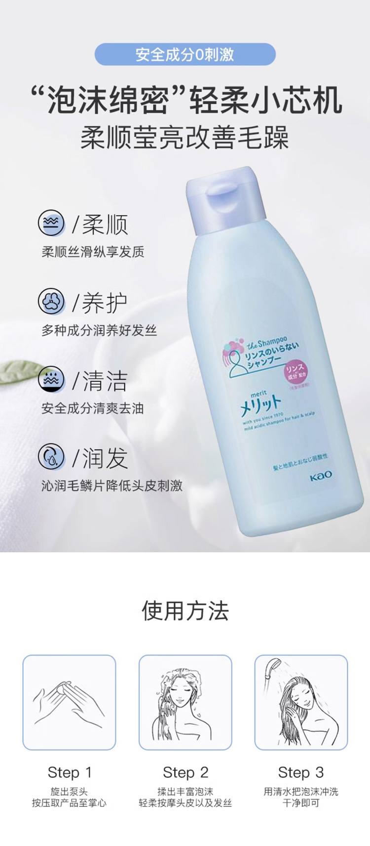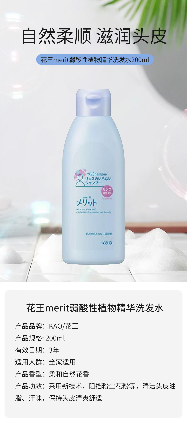 【日版】KAO花王 merit弱酸性植物精华洗发水 200ml