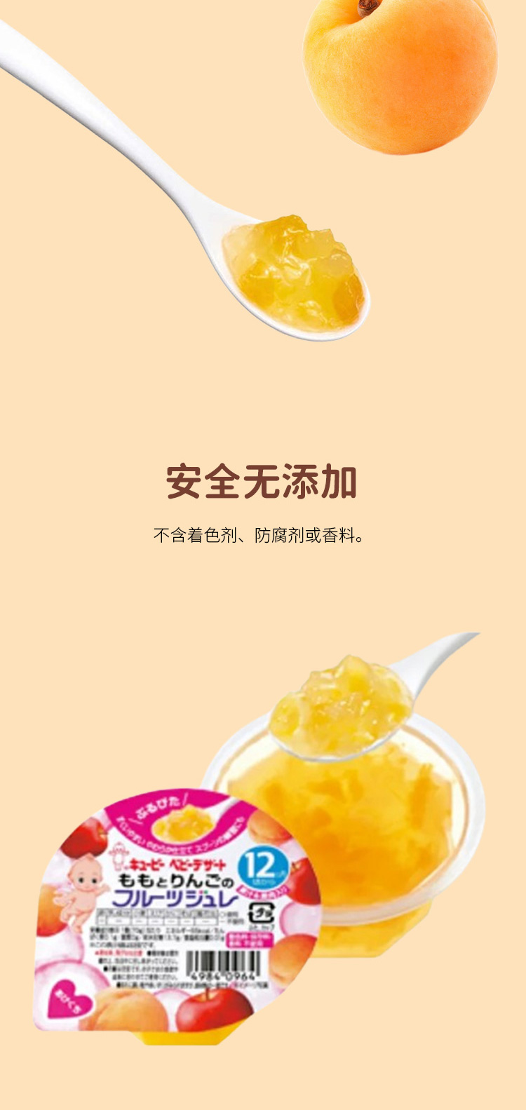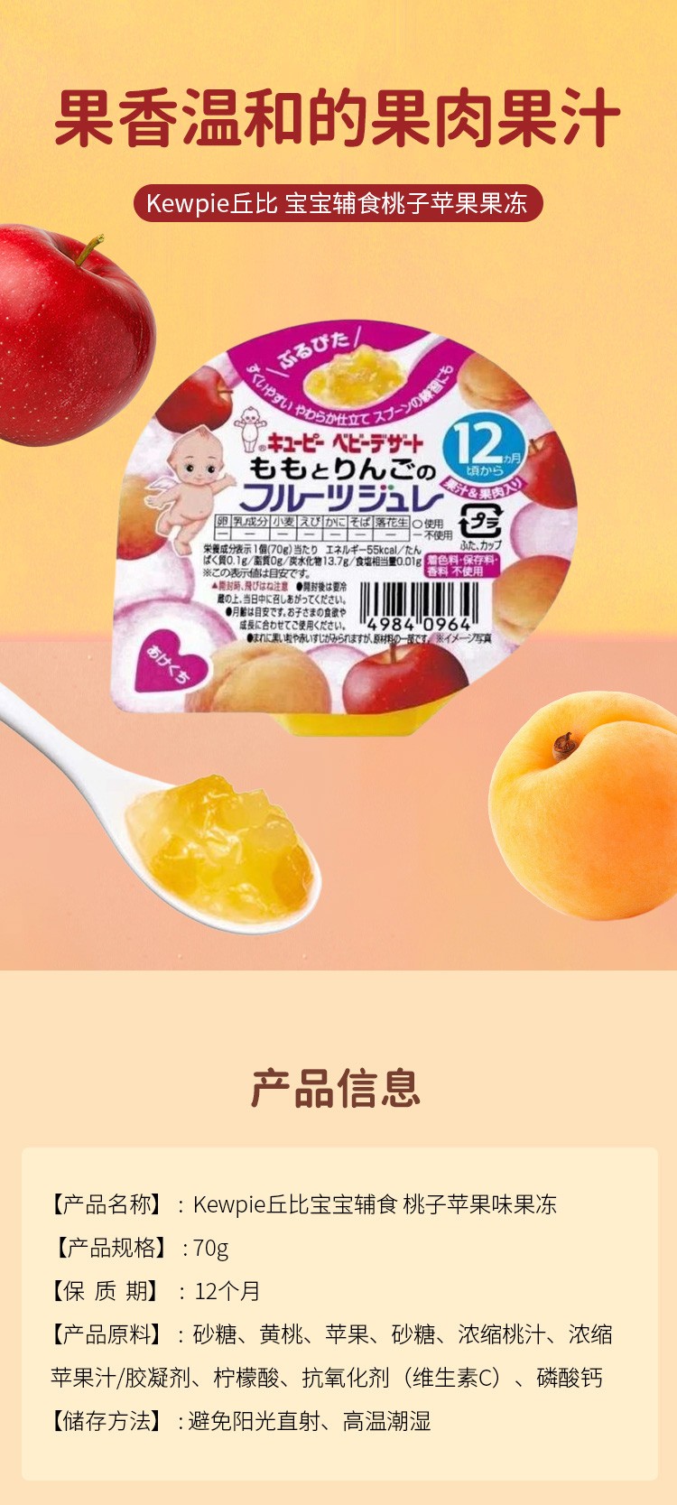 【日版】Kewpie丘比 婴儿/宝宝辅食 桃子苹果味果冻 70g