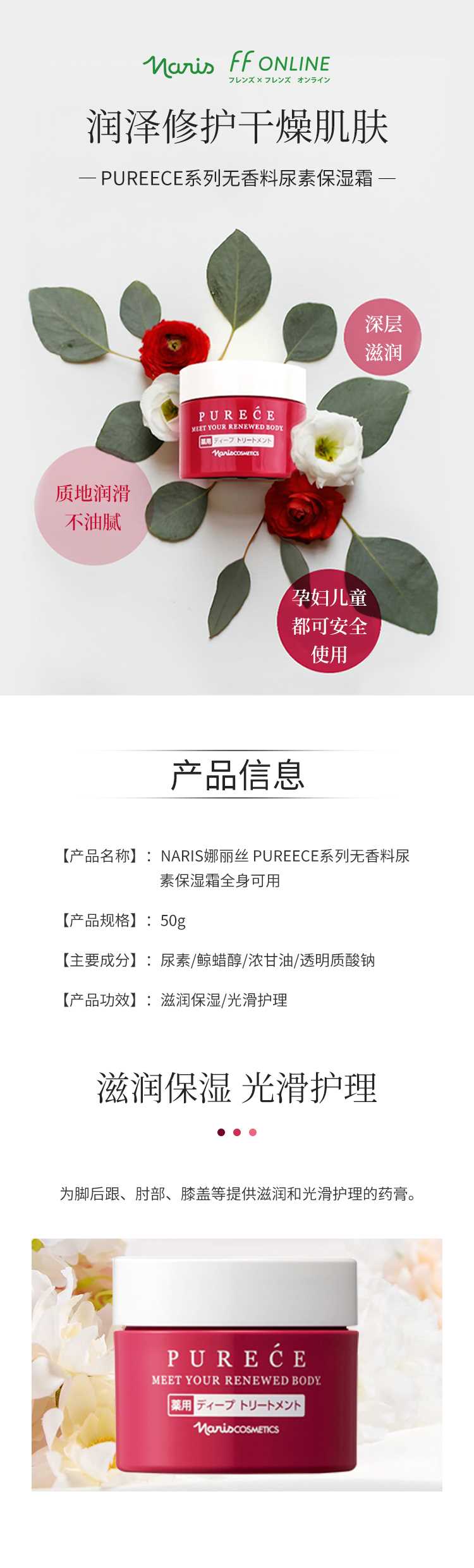 【日版】NARIS娜丽丝 PUREECE系列无香料尿素保湿霜50g全身可用