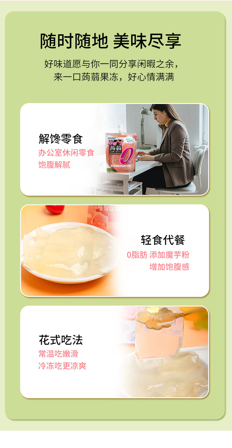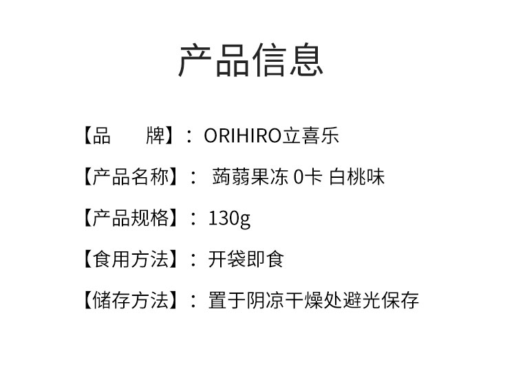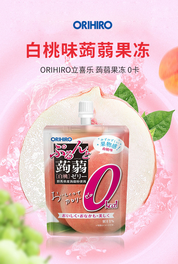 【日版】ORIHIRO欧力喜乐 蒟蒻果冻 0卡 白桃味 130g