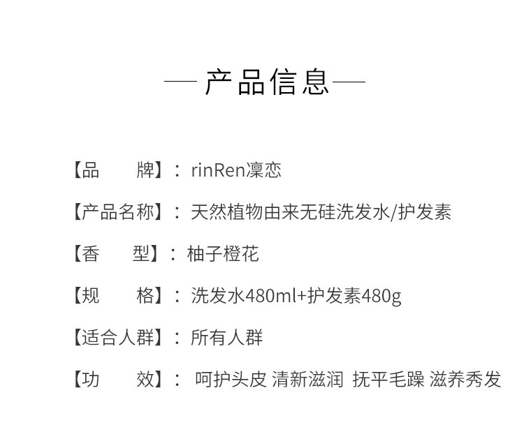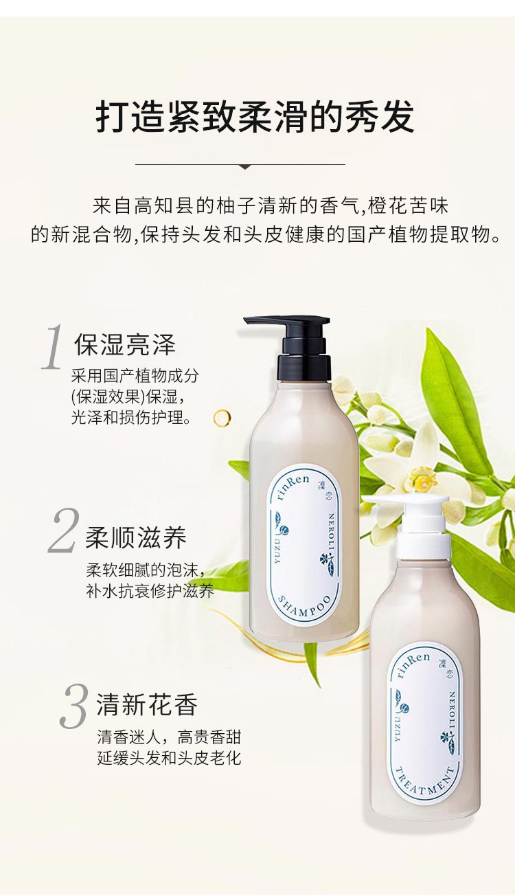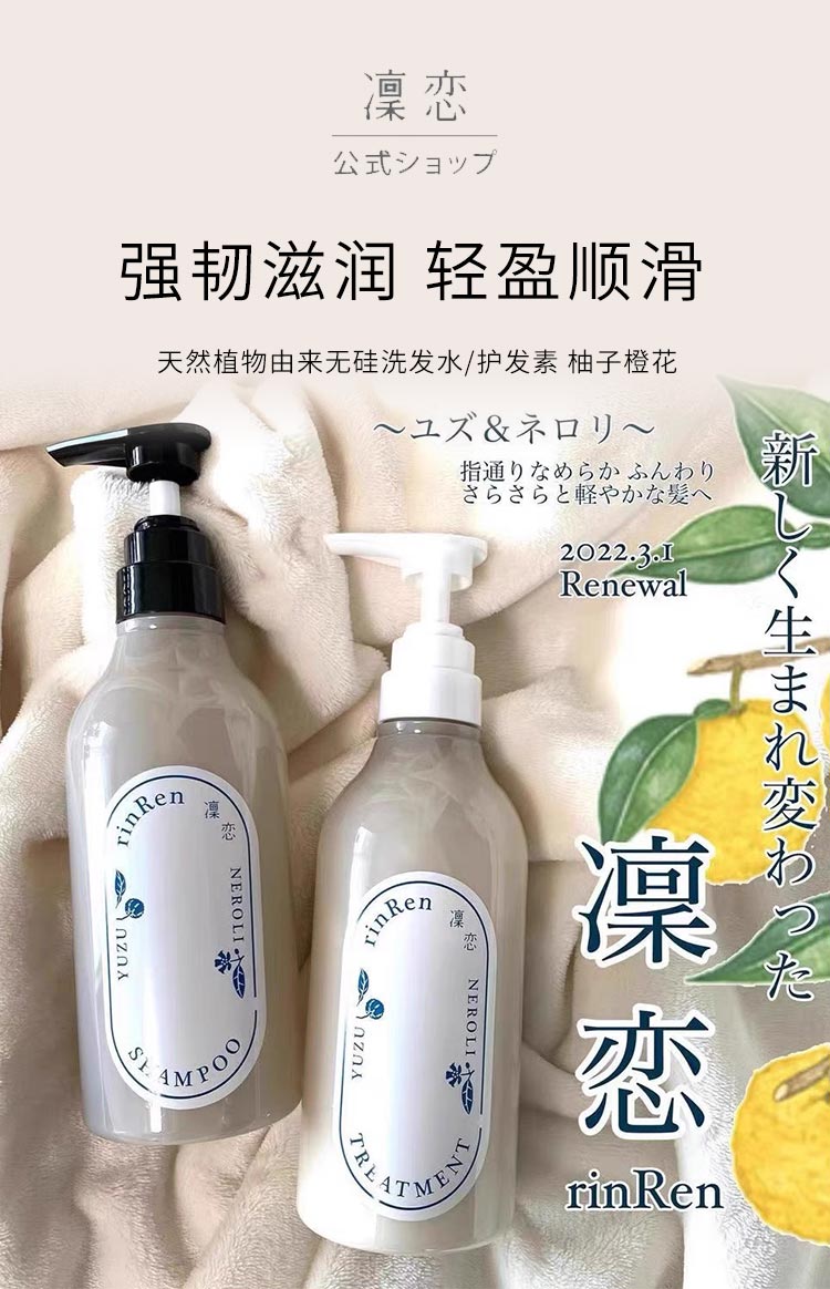 【日版】rinRen凜恋 天然植物由来无硅洗发水/护发素 柚子橙花 480ml