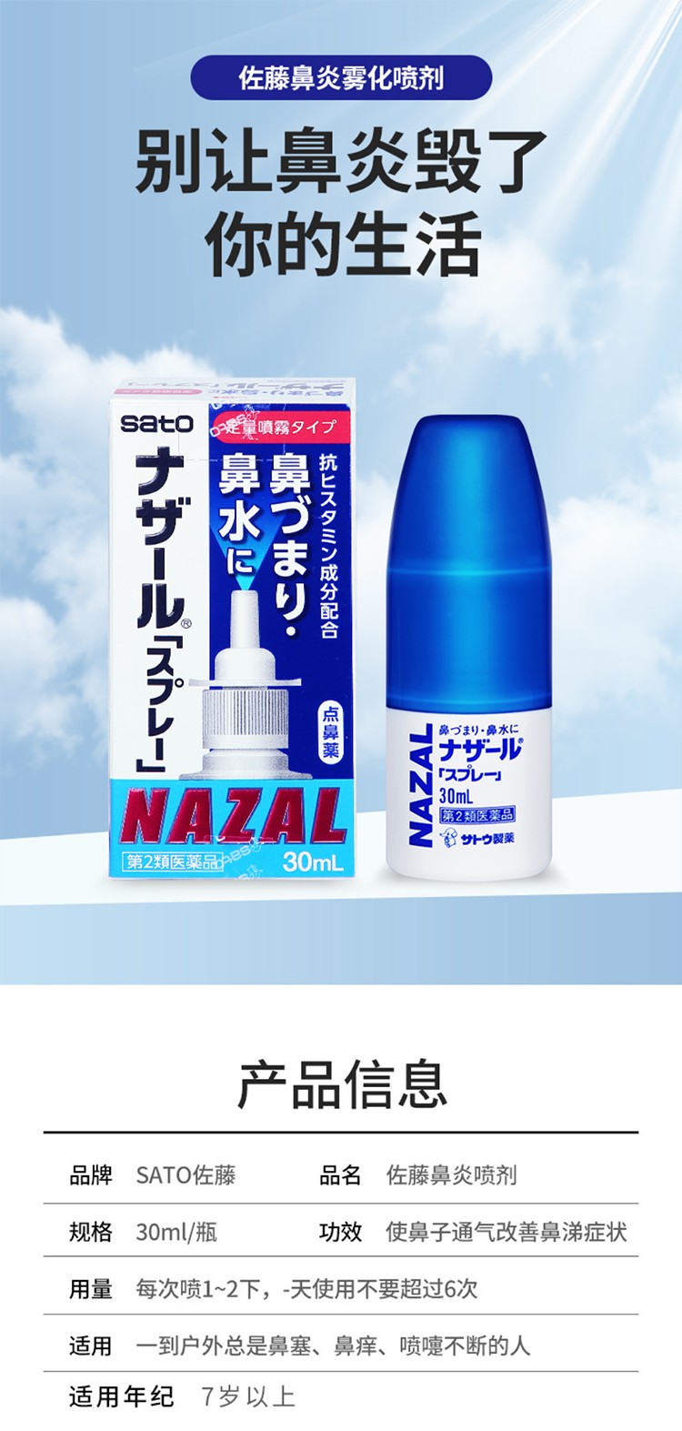 【日版】SATO佐藤制药 鼻炎喷雾蓝色30ml