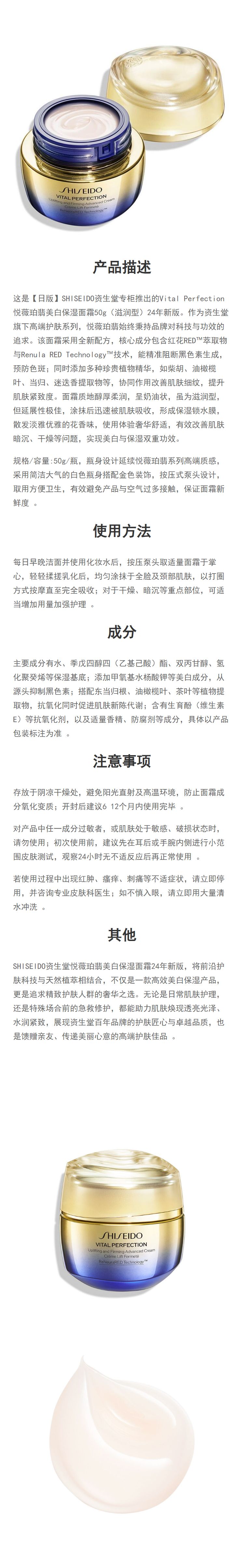 【日版】SHISEIDO资生堂 专柜 Vital Perfection悦薇珀翡 美白保湿面霜50g 滋润型 24年新版
