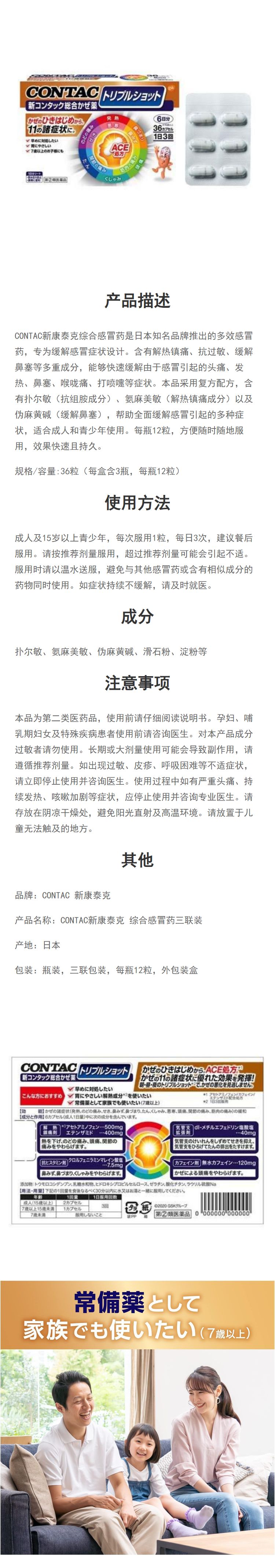 【第二类医药品】CONTAC新康泰克 综合感冒药三联装 36粒