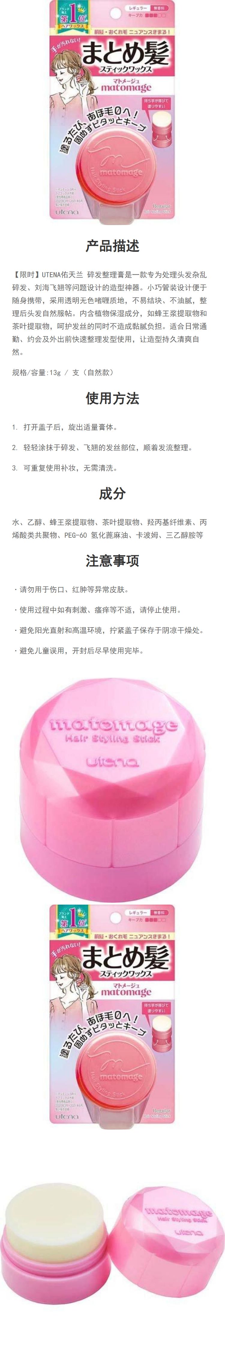 【限时】UTENA佑天兰 碎发整理膏13g 造型神器刘海定型发蜡 自然型