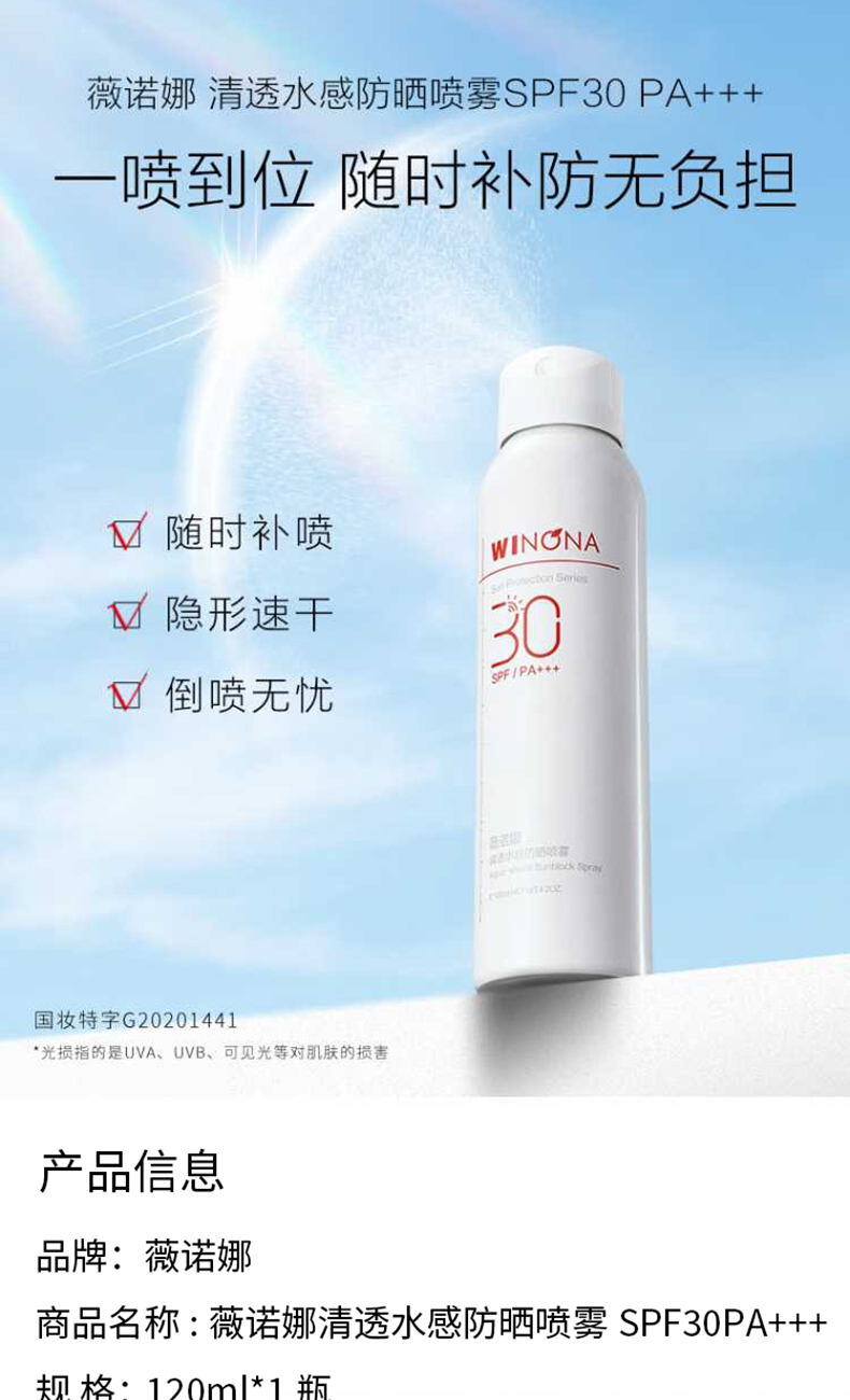 薇诺娜 清透水感防晒喷雾SPF30 PA+++