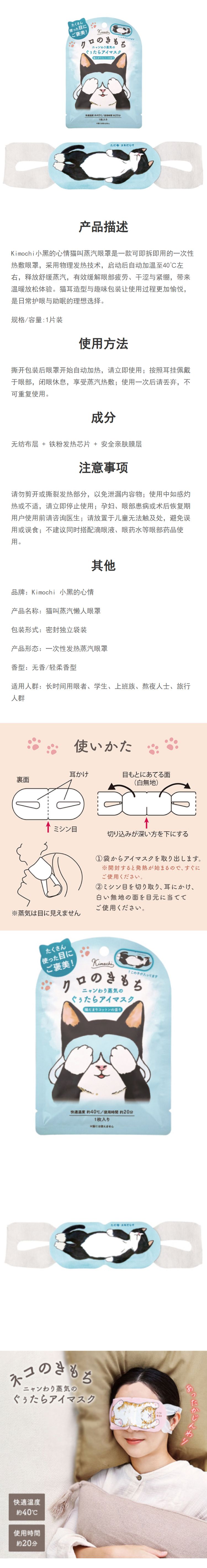 Kimochi 小黑的心情 猫叫蒸汽懒人眼罩 1 片 |热眼罩猫