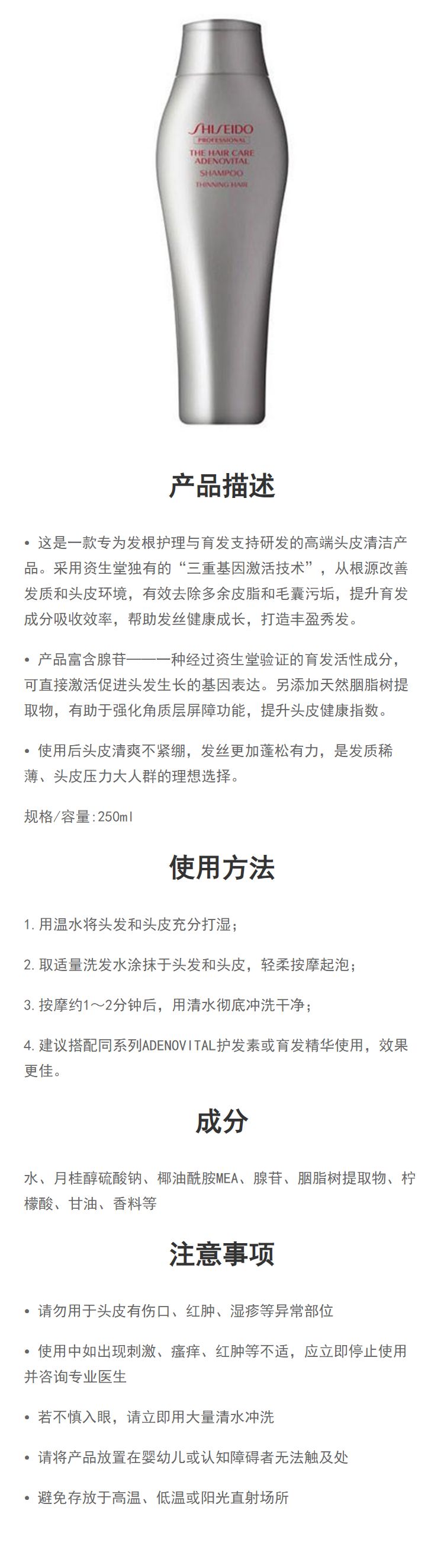SHISEIDO资生堂 护理线 ADENOVITAL 育发护发洗发水 250ML 银灰色瓶 新